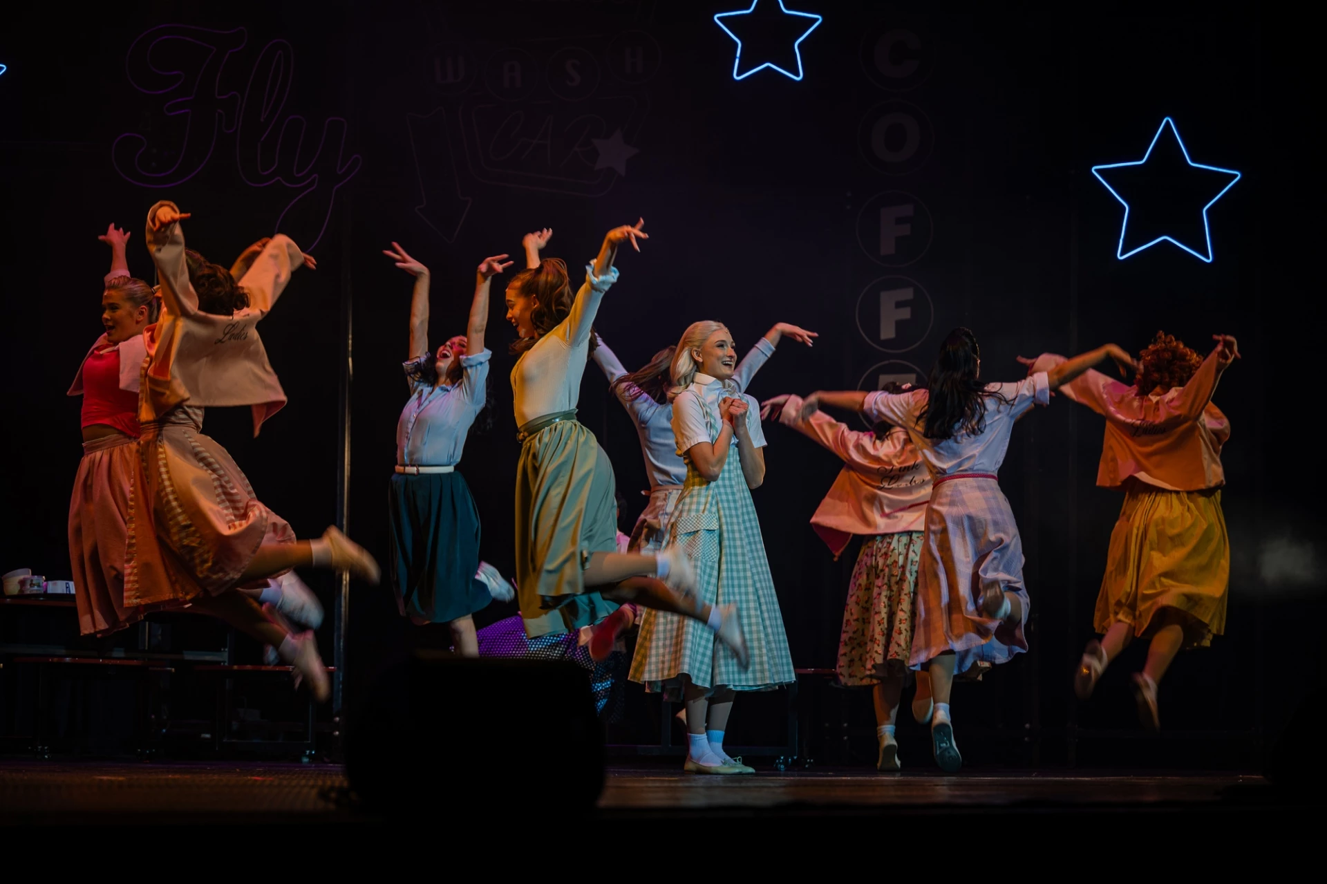 Сценичната версия предложи на публиката не само познатите хитове, но и сцени и песни, които не присъстват във филмовата адаптация. Декорите, изработени специално за спектакъла пък пренесоха аудиторията директно в Райдъл Хай – с внимание към детайла, стил и усещане за автентичност. Особено впечатляващ момент беше изпълнението на "Greased Lightnin’" – на сцената влезе истинска кола, цяла, не като декор от отделни части. Това зрелищно решение предизвика възгласи и аплодисменти още при появата ѝ и затвърди усещането за мащабна международна продукция.