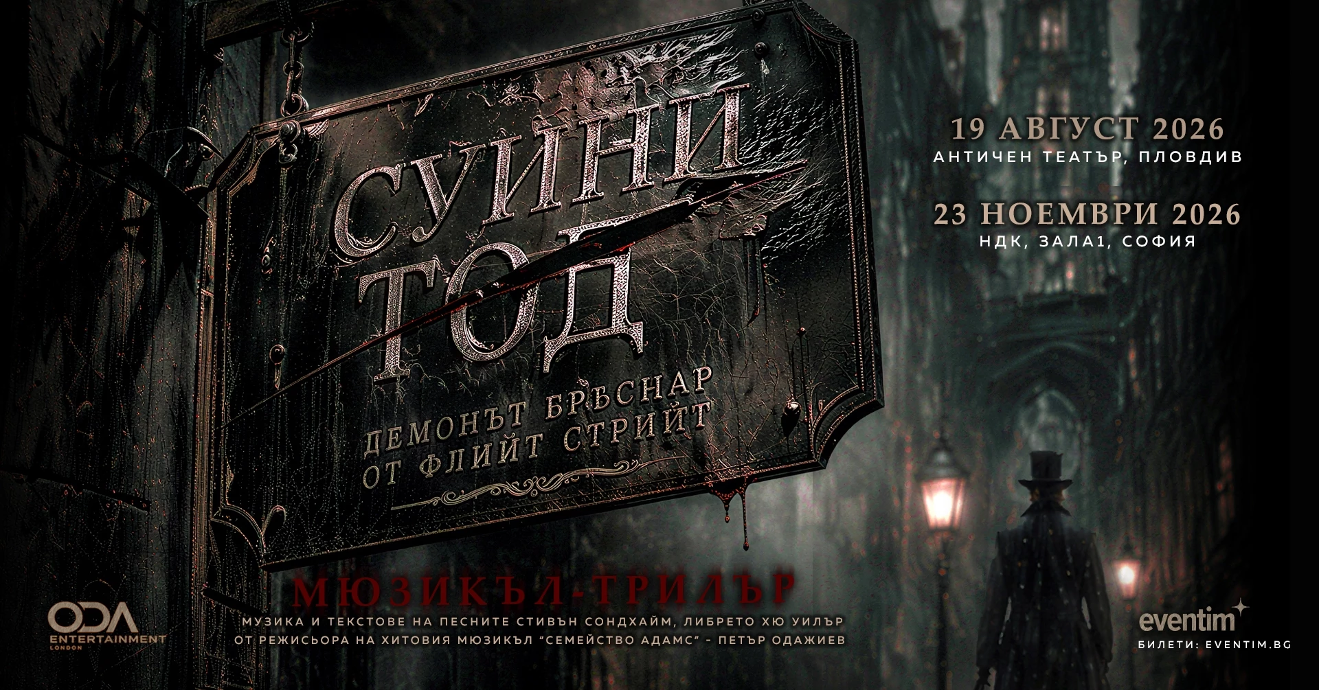 "Суини Тод: Бръснарят Демон от Флийт Стрийт" двойна премиера на 19 август в Античен театър Пловдив и на 23 ноември в зала 1 на НДК. Билети ще откриете в мрежата на Ивентим.