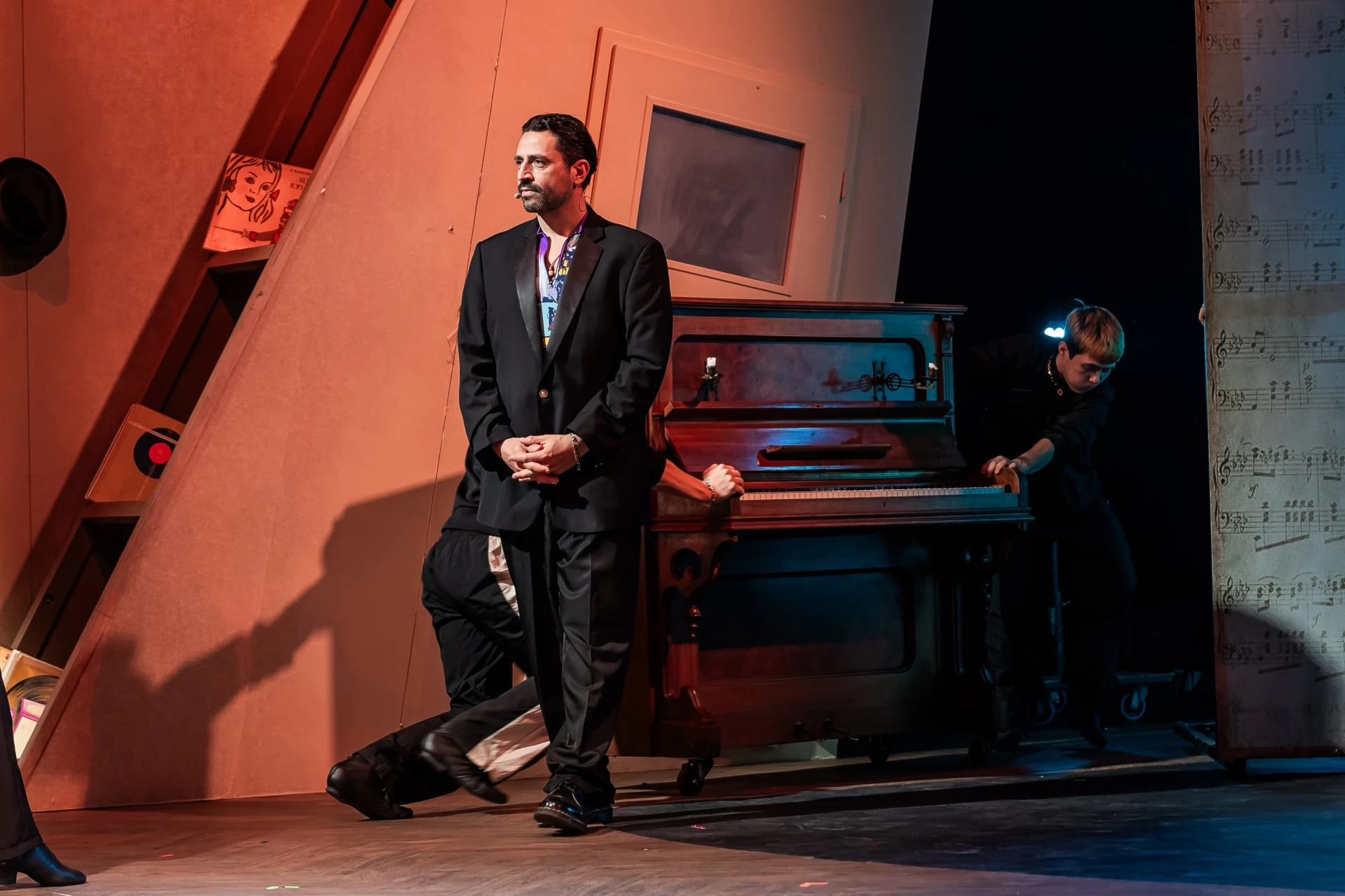 В сърцето на тази история стои едно старо пиано Bluthner. Именно то обединява малки и големи и предизвиква важни въпроси за живота у героите. Неслучайно един от персонажите се провиква: "Един за всички, всички за пианото". А старите шкафове и скринове, плакатите, подът с дъски, подвижните декори (сценограф Елица Георгиева) и костюмите, дело на Сърджан Кръстевски, по перфектен начин пресъздават духа на 90-те години в България.