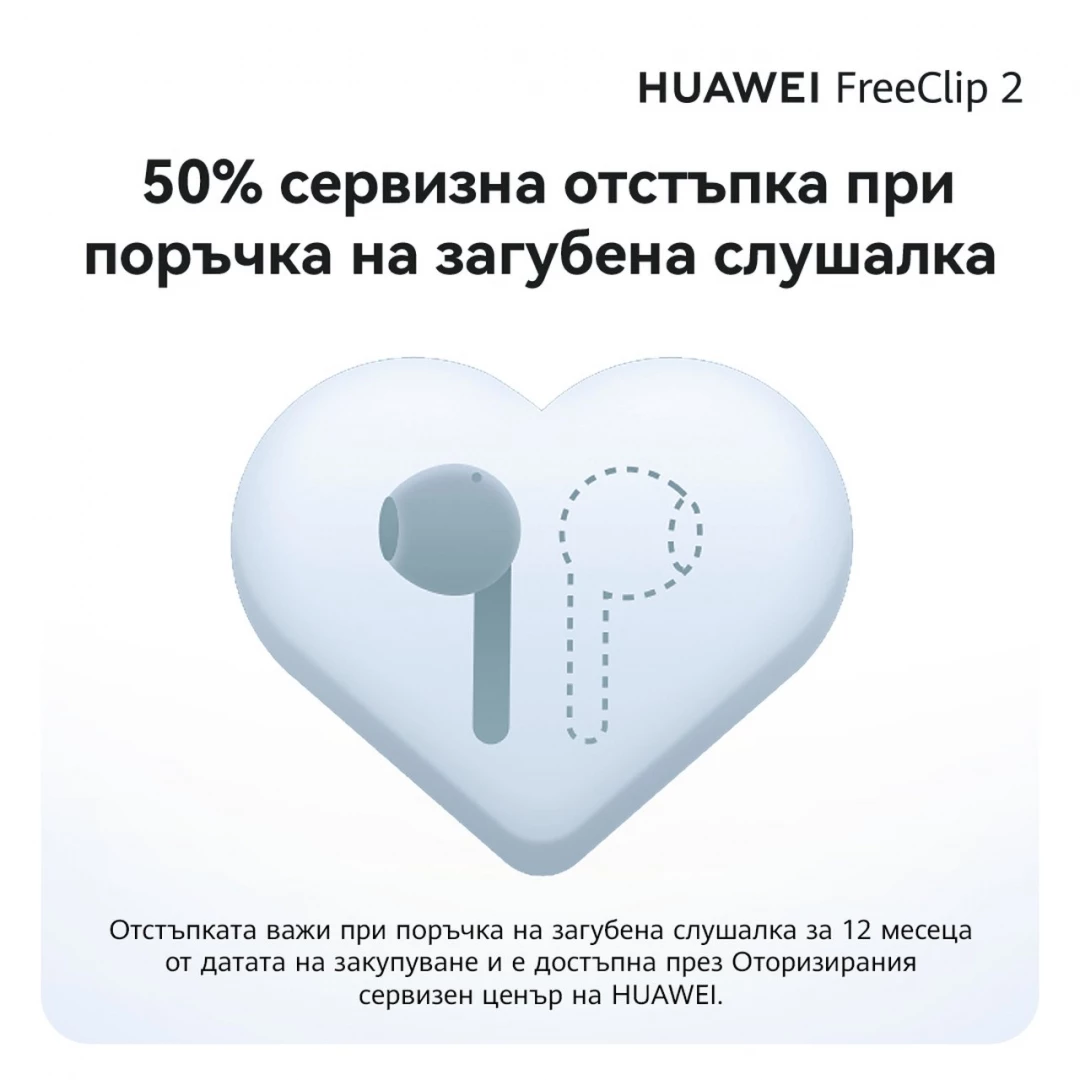 Второто поколение на култовата серия безжични слушалки Huawei FreeClip – Huawei FreeClip 2, вече се предлага на българския пазар на препоръчителна цена от 199 евро. Закупилите FreeClip 2 до 1 март 2026 г. включително могат да се възползват и от ваучер за отстъпка от 20 евро, която важи както във физическите, така и в онлайн магазините. Новият модел се предлага в три цветови варианта – графитено черно, светлосиньо и бяло, от Technopolis, A1, Yettel, ЗОРА, партньорите на дистрибутора Polycomp, включително OZONE.bg, Ardes и Plesio, и скоро ще бъдат налични и във Vivacom и Technomarket.