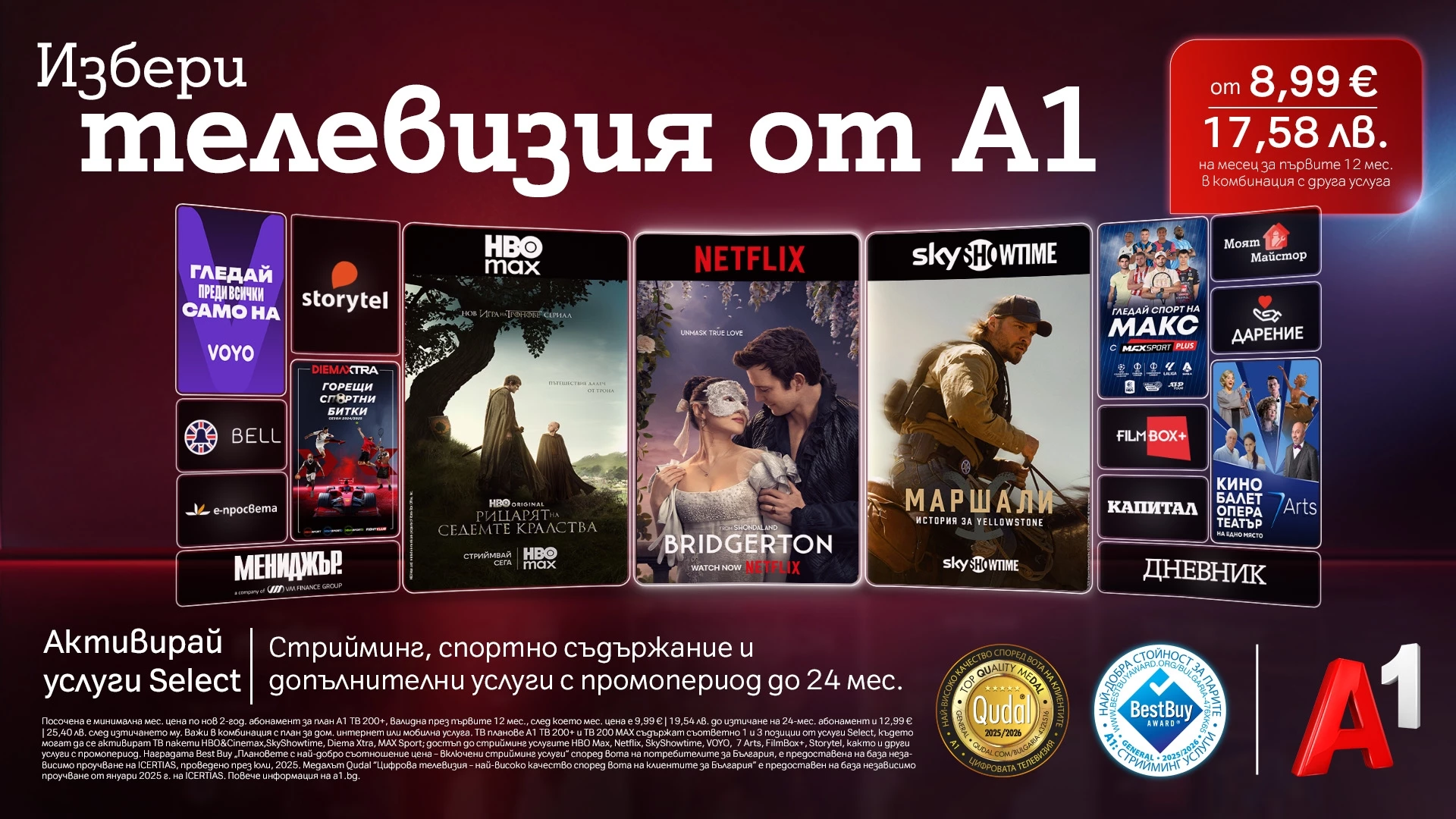 Гъвкавите мобилни и фиксирани планове на А1 вече дават още повече възможности за персонализация. От 4 март избираемите услуги Select могат да бъдат включвани към всички мобилни и фиксирани планове, така че да отговорят на специфичните предпочитания и нужди на потребителите. При комбинация на повече от една услуга потребителите ще могат да се възползват от свободни позиции за избираеми услуги към всяка от тях. Предлага се и допълнителна промоционална отстъпка от месечната такса, която достига до 3 € / месец.