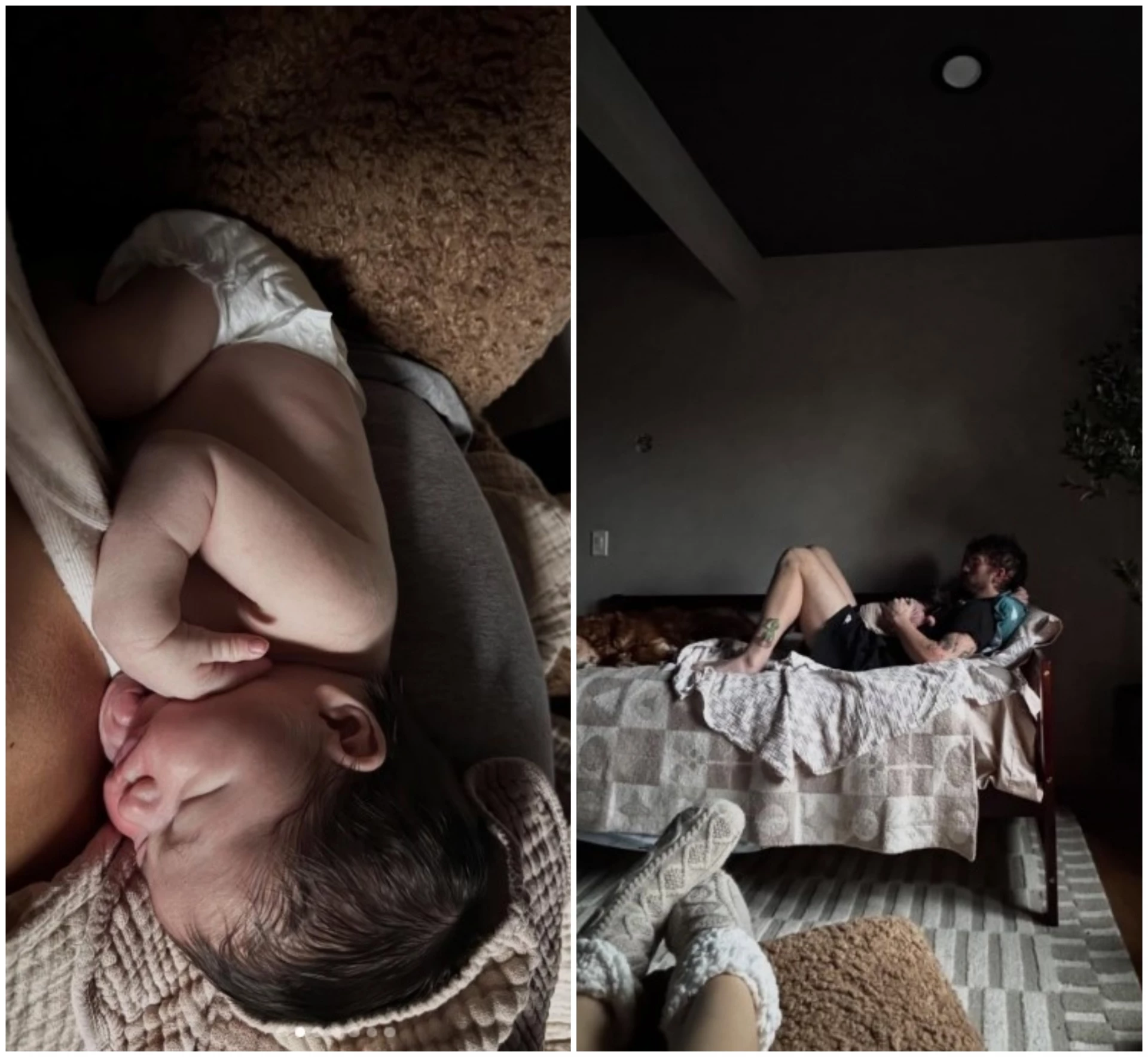 Райън сподели и сладки моменти от първите дни с дъщеря си. На един от кадрите бебето спи с ръце под брадичката, а на друг - Джош лежи с малката Феликс върху гърдите си, докато до тях е и домашният им любимец.