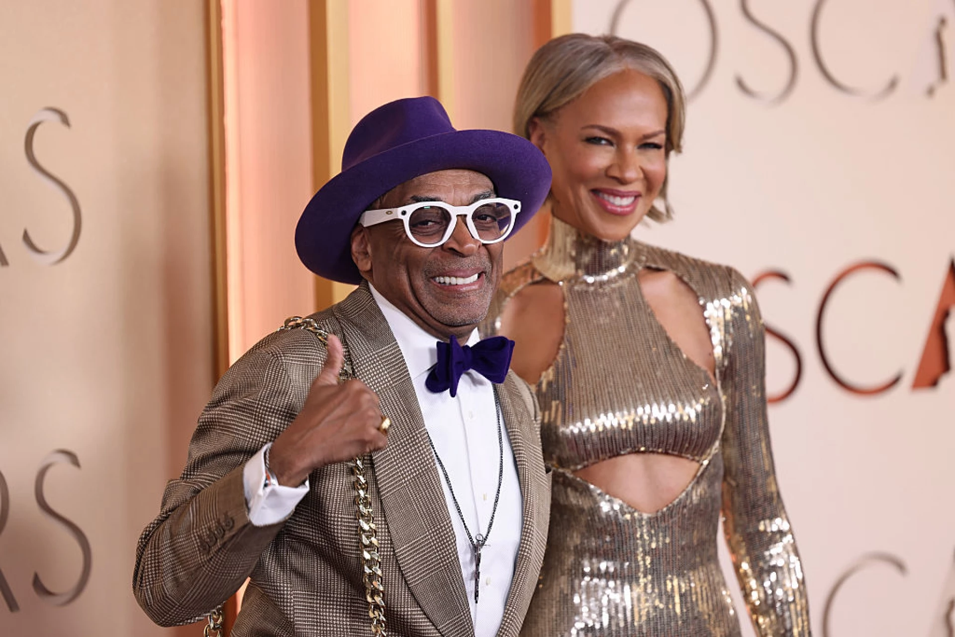 Ветеранът режисьор Спайк Лий внесе ярък акцент в иначе неутралния си тоалет с лилава шапка и папийонка. В миналото той е носил този цвят в чест на музиканта Принс.