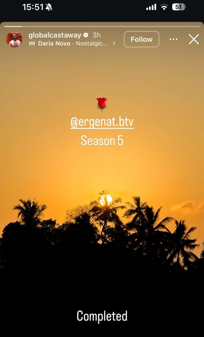 Снимките на новия пети сезон на хитовото телевизионно риалити "Ергенът" са приключили, става ясно от снимка на влогърът Слави Туджаров, споделена на стори в Инстаграм на 19 февруари по обед. В профила си той е качил снимка на залеза в Шри Ланка с надпис: "Completed" (завършен, приключен - бел.ред.).
