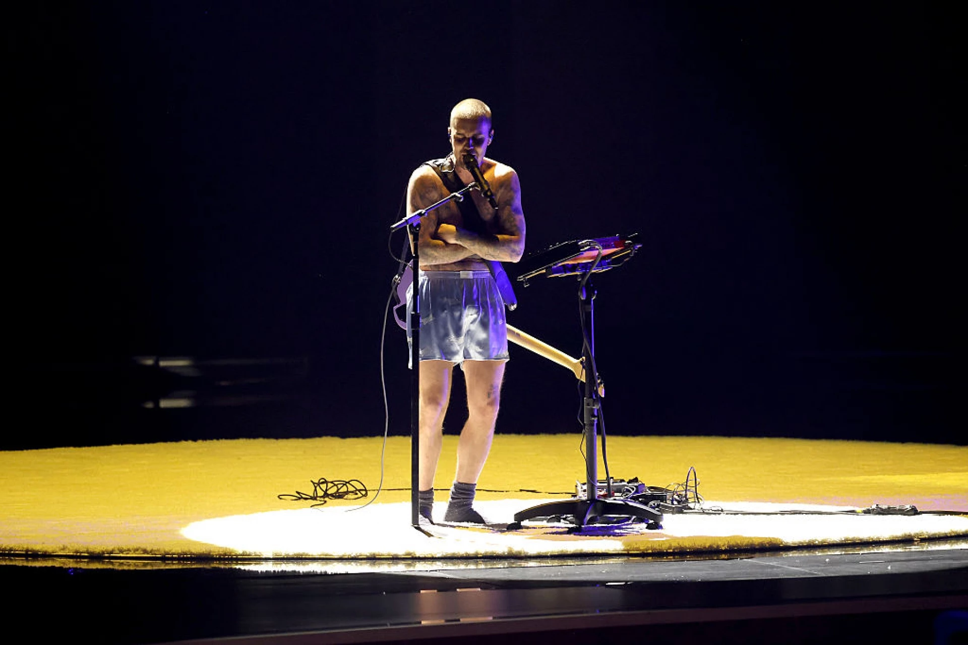 Джъстин Бийбър, от своя страна, също предизвика фурор в две крайности. На червения килим, пред камерите, блесна в елегантен черен овърсайз костюм, а по-късно изненада публиката, като се появи на сцената почти гол. Той изпълни песента си "Yukon" без риза, само в копринени боксерки и чорапи, което подчини фокуса на емоционалното изпълнение и татуировките му и предизвика бурни реакции в социалните мрежи.