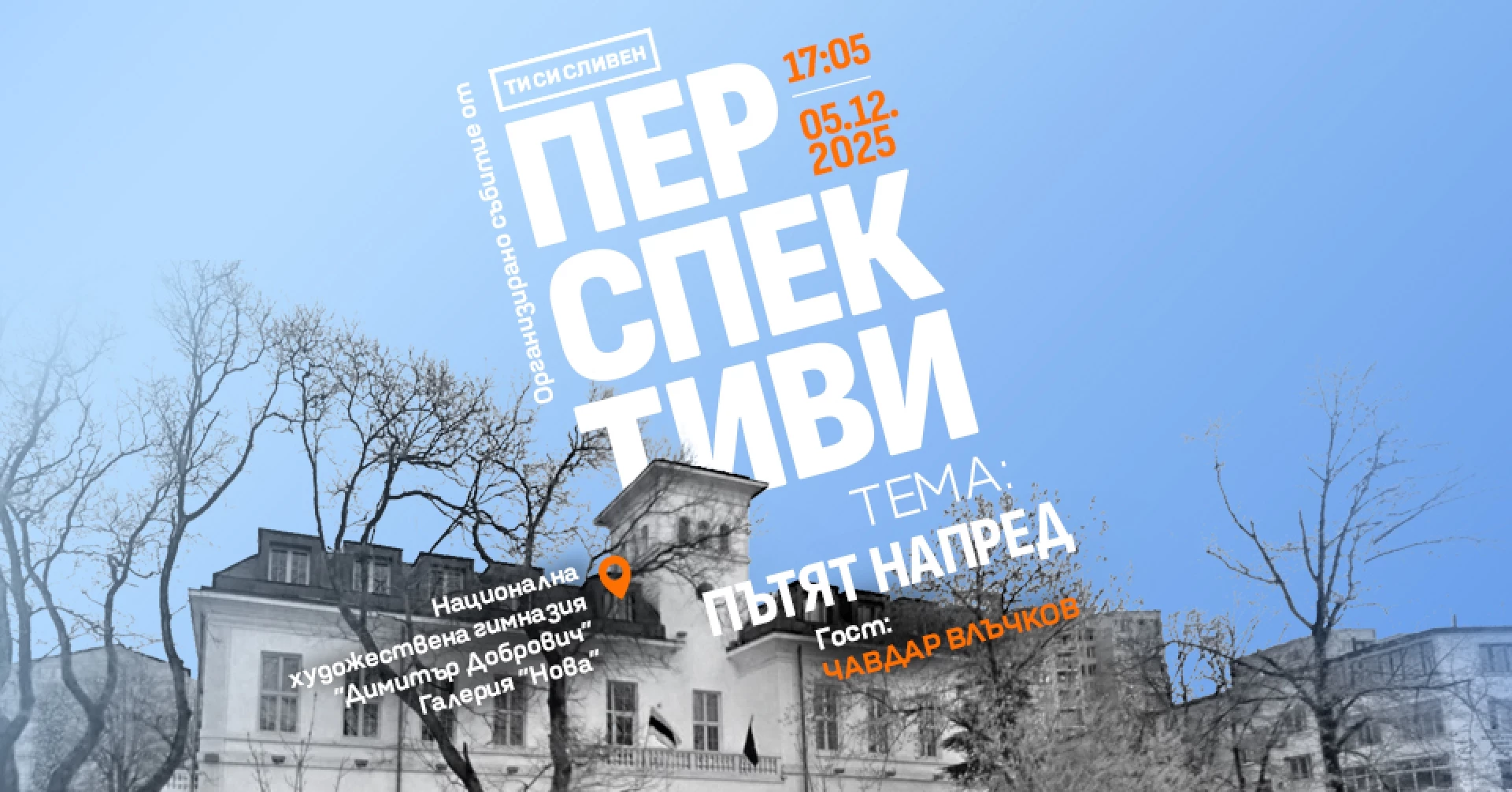 В поредното издание на емблематичния формат "Перспективи" на специалните места в Сливен със специални гости на града - свободен достъп, беседа и коктейл парти с музика на живо, ще се проведе "Пътят напред" или "Как устойчивото лично развитие води до обществена промяна?!" В събитието ще участва Чавдар Влъчков - икономист, финансист и анализатор на международни социално-икономически процеси.