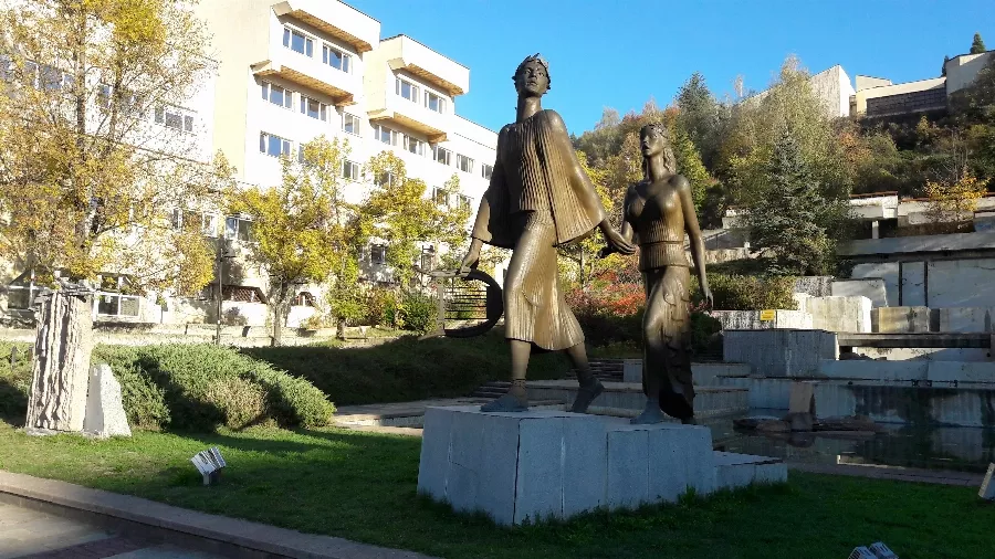 Точно пред нея е скулптурата на Орфей и Евридика, създадена преди 15 години от Георги Чапкънов и историка проф. Иван Маразов. Тя пресъздава моментът, в който Орфей извежда любимата си Евридика от подземното царство на мъртвите, но противно на забраната на бога Хадес, не издържа и се обръща да я види. След това той я губи завинаги.