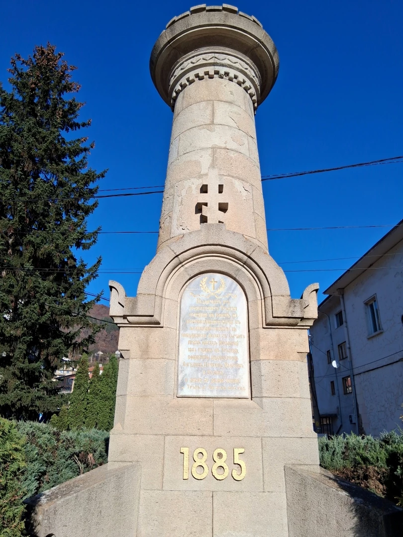 Паметникът в Трън, издигнат от "признателните трънски граждане" в памет на падналите подпоручици и долни чинове в "братоубийствената победоносна война със сърбите". Снимка: Actualno/Елена Страхилова