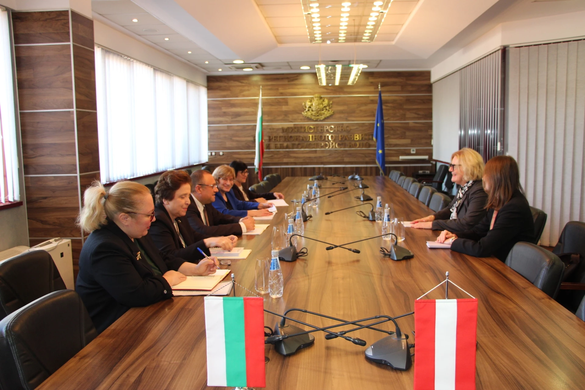 Министърът на регионалното развитие и благоустройството Иван Иванов проведе среща с посланика на Република Австрия у нас Н.Пр. Андреа Икич-Бьом. Двамата обсъдиха широк кръг въпроси, свързани с продължаване и надграждане на доброто сътрудничество между двете страни. В разговора участва и зам.-министър Дора Янкова.