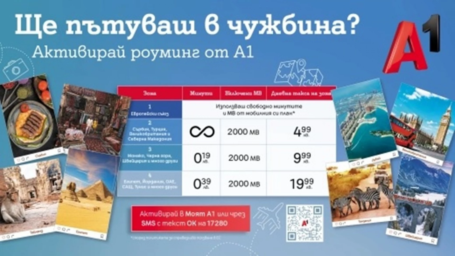 А благодарение на роуминга от А1, ще можете да останете свързани с близките си и да споделяте с тях незабравимите моменти от всяко пътуване.