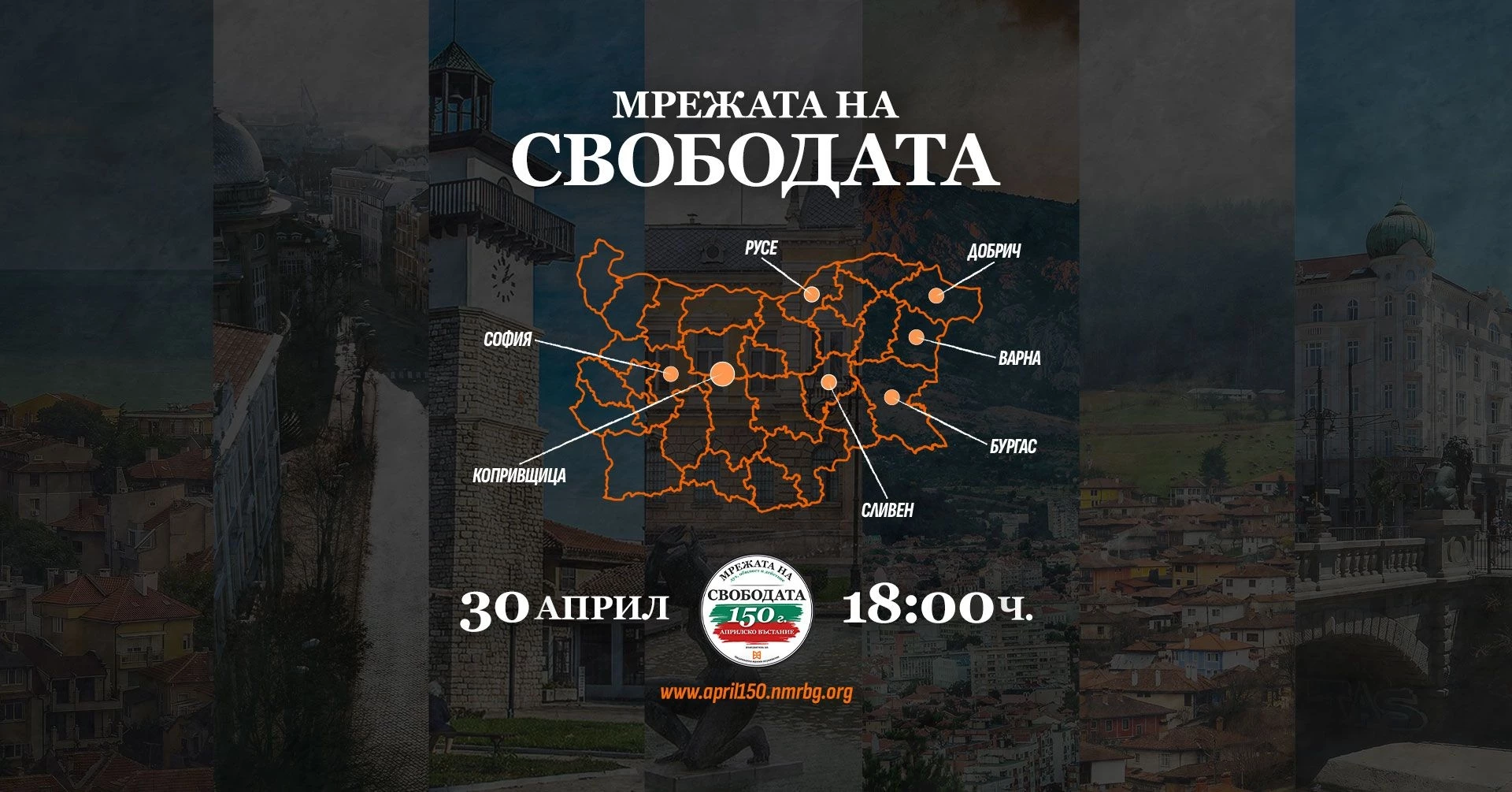 Седем български града ще съберат едновременно публика на живо в националното събитие „Мрежата на свободата“ на 30 април от 18:00 ч., посветено на 150-годишнината от Априлското въстание. Събитието въвежда нов за страната формат на паралелно свързани сцени в различни градове и се откроява като единствена по рода си инициатива, посветена на годишнината.