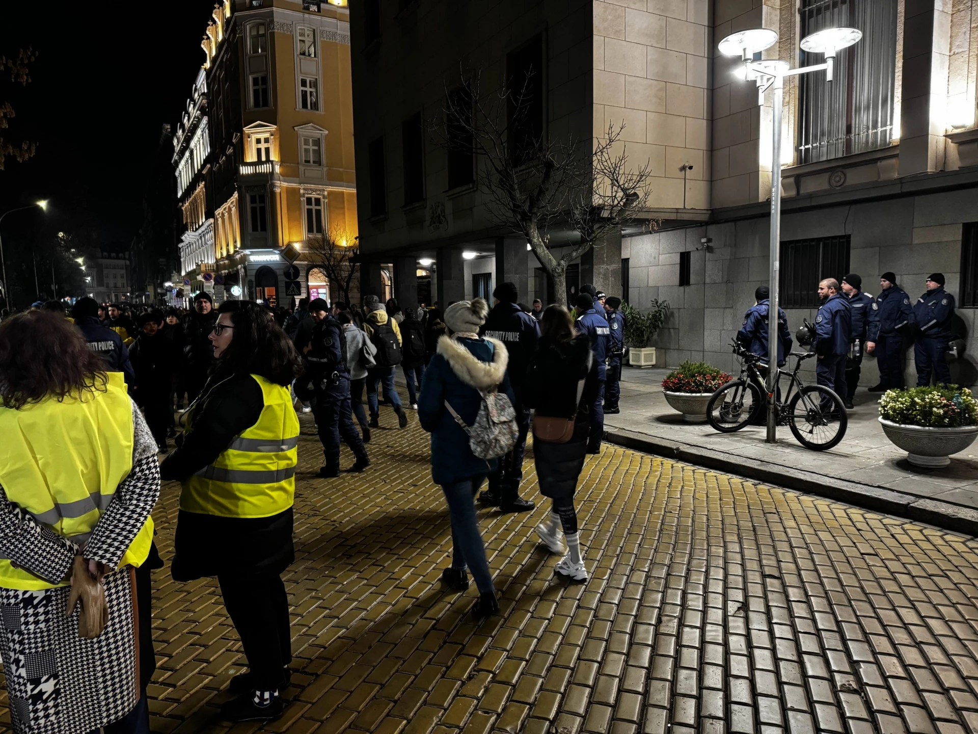 Полицията спира и проверява граждани, които приличат на провокатори, още преди да влязат в тълпата от протестиращи срещу правителството в София тази вечер, 10 декември. Това видя репортер на Actualno.com на мястото на демонстрацията. Действията на МВР идват след допуснатото преливане на чашата на предишния голям протест - срещу бюджет 2026, провел се миналата седмица. Тогава провокаторите опорочиха мирното гражданско движение в края на вечерта пред централата на ДПС на Делян Пеевски и при офиса на ГЕРБ.