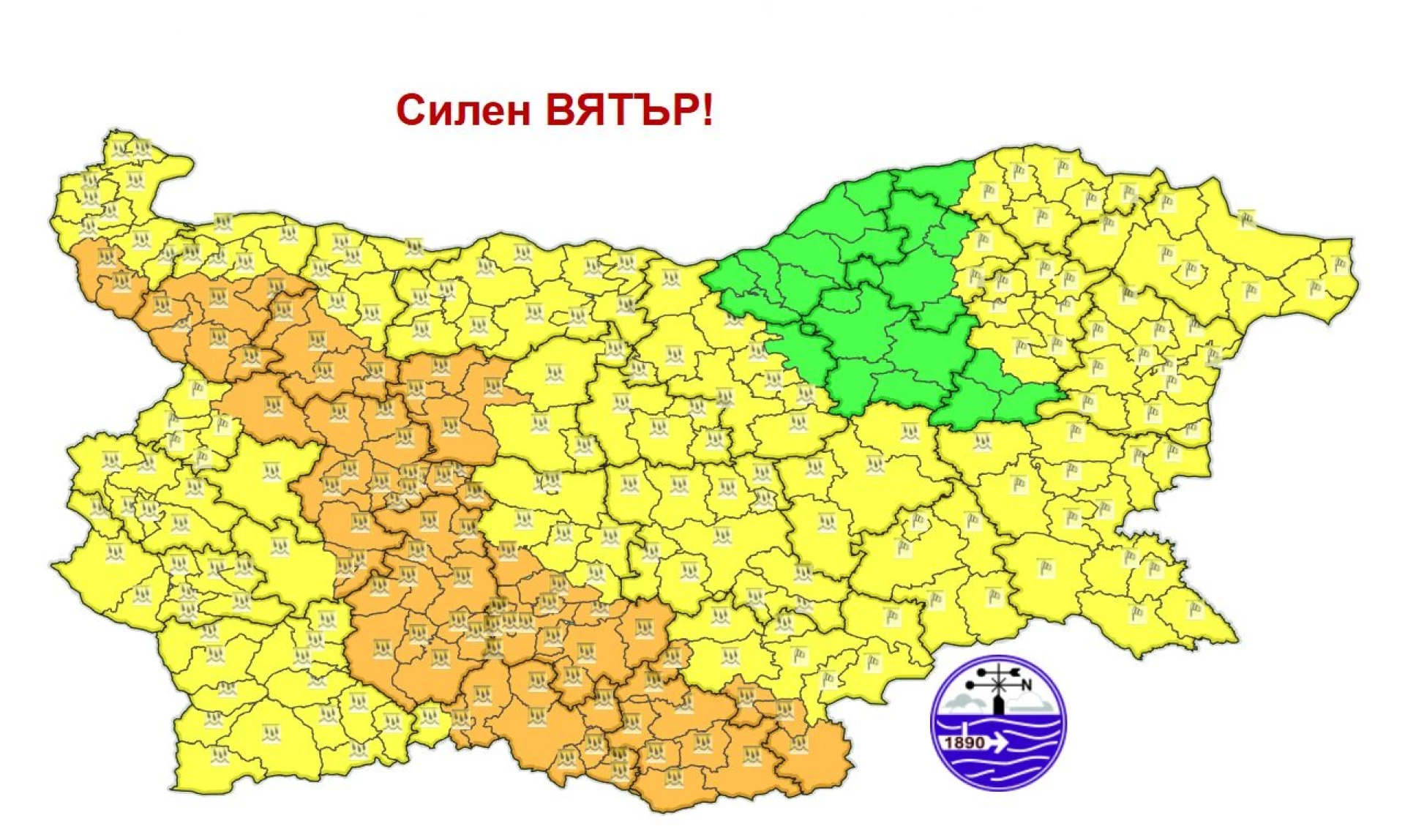 Жълт код за потенциално опасно време и силни дъждове е в сила за областите София град, част от София област, Перник, Кюстендил, Благоевград, Плевен, Велико Търново, както и за части от Видин, Монтана и Враца, Ловеч, Габрово, Пловдив, Стара Загора, Сливен и Хасково, Силистра, Добрич, Шумен, Варна, Разград, Бургас и Ямбол.