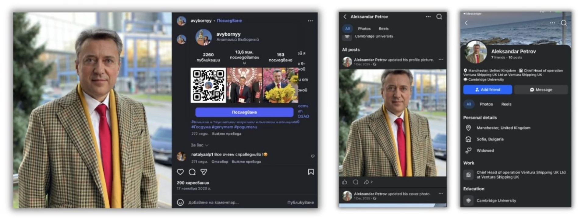 В случая на Димана първата подобна молба идва два-три месеца след началото на връзката. След това идват и нови – заради арест, престой в болница, освобождаване на колети. Така минава близо година преди жената да разбере, че „Александър Петров“ не е инженер на кораб в Австралия, а снимката на профила му е на руския депутат Анатолий Виборни. Профили с тези снимки и това име продължават периодично да са активни във Facebook, където в приятелската им листа има основно жени.