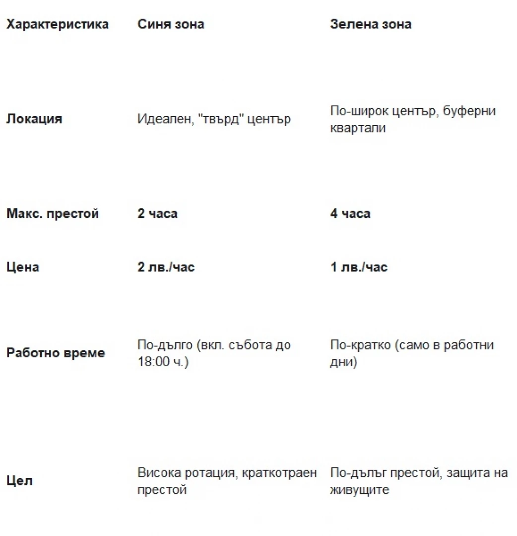 Идеята: Да се създаде зона за краткотрайно паркиране с висока ротация. Целта не беше просто да се събират пари, а да се насърчат хората да оставят колите си за кратко (за работа, среща, пазаруване) и да освободят място за следващия. Това трябваше да принуди пътуващите до центъра да използват градски транспорт.