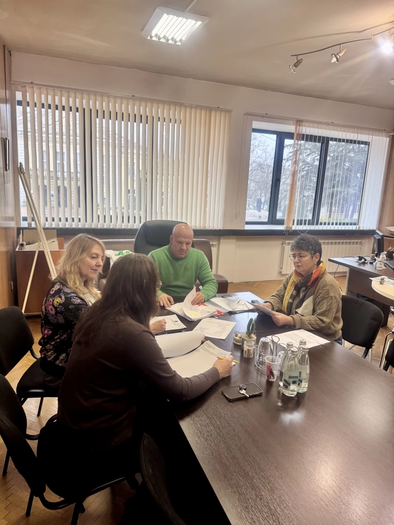 Енчо Керязов, зам.-кмет на Община Ямбол, Неда Бъчварова, ръководител по проект „Иновативни здравно-социални услуги в община Ямбол“, Диляна Панайотова, координатор „Иновативни здравно-социални услуги в община Ямбол“ и Веса Кънева, координатор по проект „Иновативни здравно-социални услуги в община Ямбол“