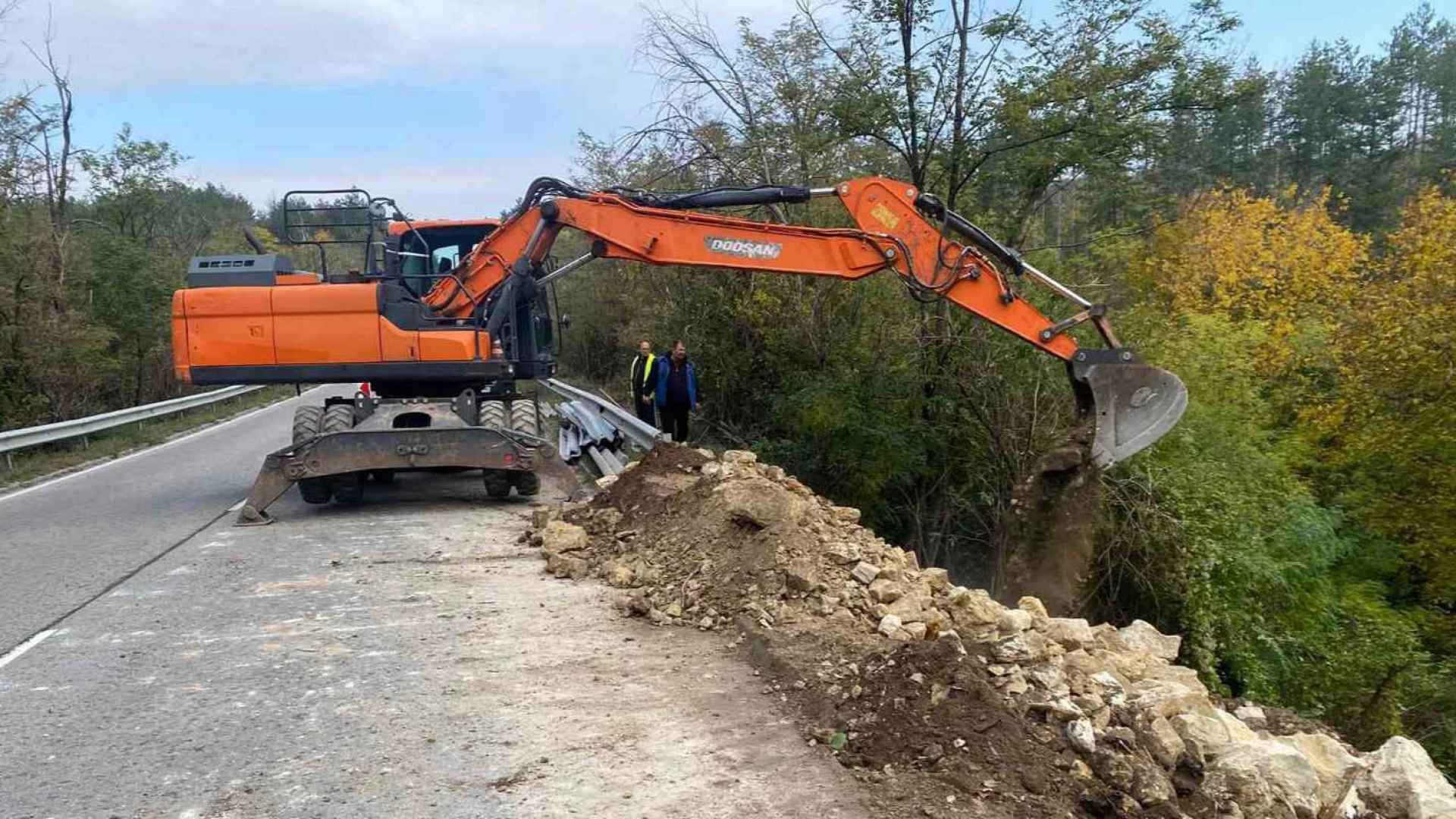 Насипва се скален материал за аварийното укрепване на участъка от път I-5 Русе - Бяла в близост до село Обретеник, компрометиран на 10 октомври от обилните дъждове. В началото на седмицата започнаха неотложни дейности по трасето. До момента са премахнати мантинелите, като предстои да бъде добавен още трошен камък и да се извърши торкретиране с бетон с цел укрепване на ската. Изградена е площадка, която се използва за издигане на насипа като е проправен и временен път през гората, по който техниката достига до компрометирания участък.