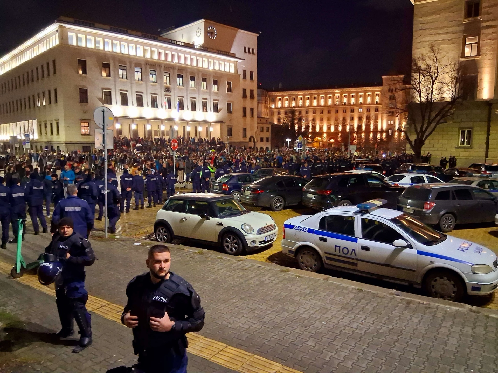 Леко напрежение възникна на протеста срещу бюджета пред сградата на Народното събрание. Отделни демонстранти хвърлиха пиратки в краката на охраняващите полицаи, но за момента обстановката е спокойна.