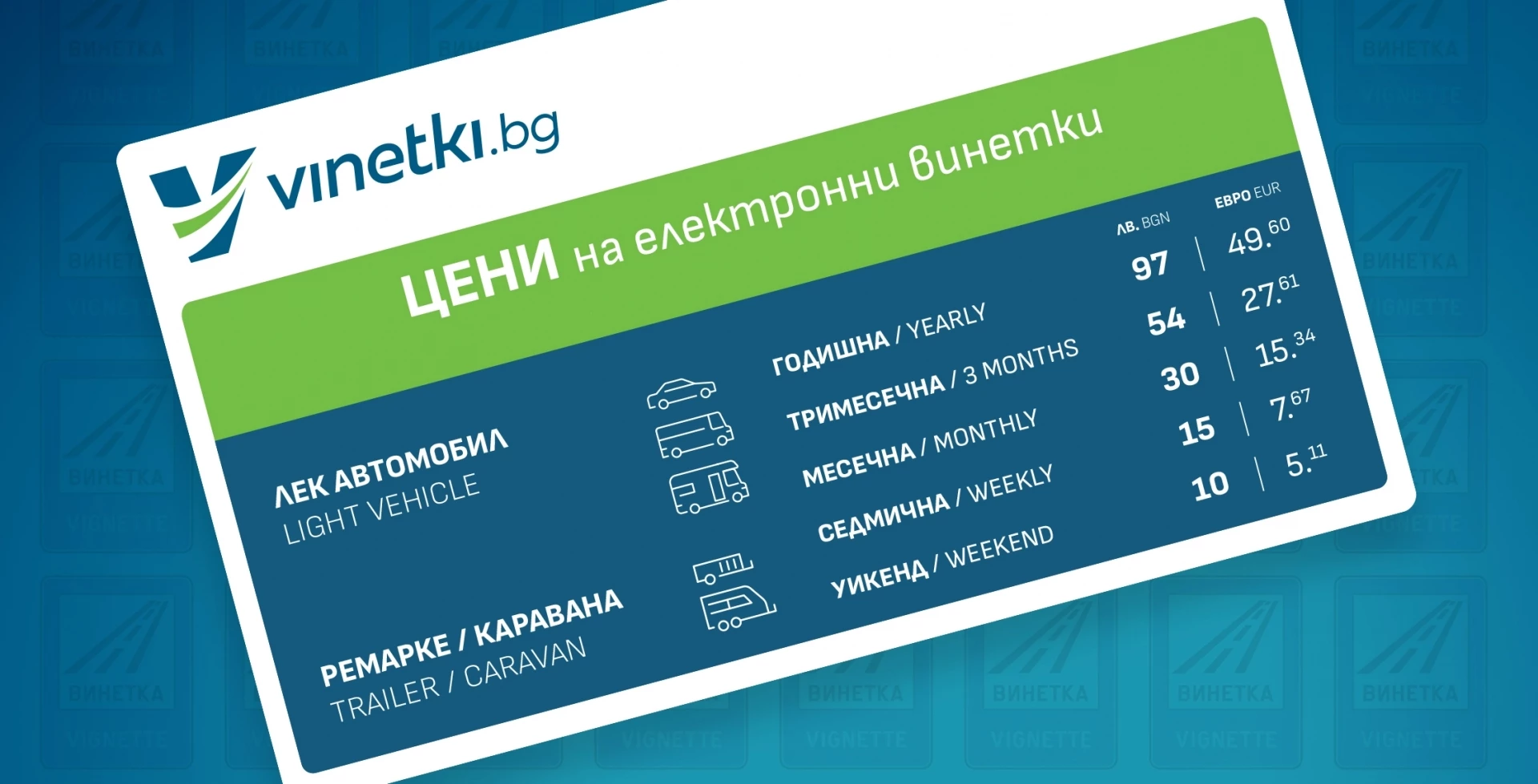 - Еднодневна – 4,09 евро (8 лв.) и е в сила от 3 февруари 2026 г.