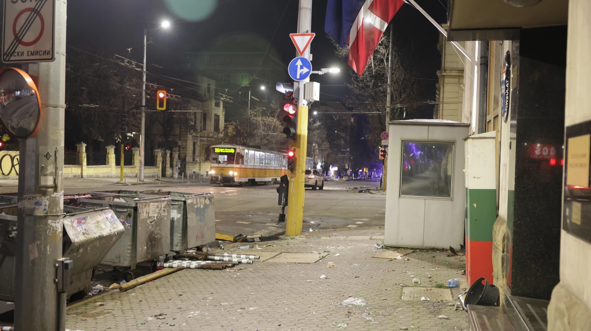 София след погрома: Потрошени улици, контейнери, трамваи
