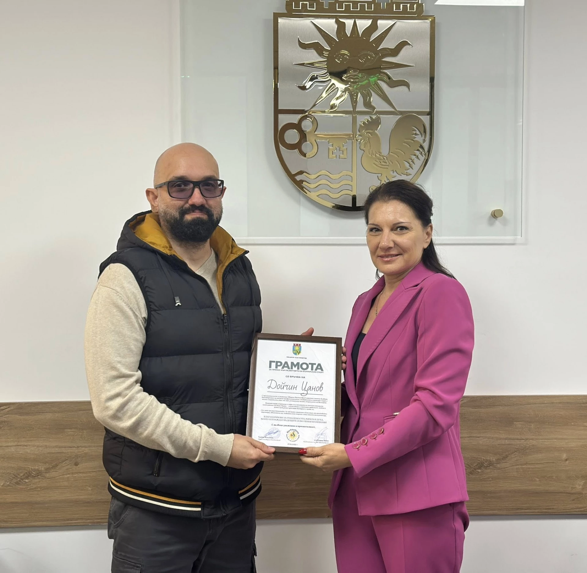 🏅 На Дойчин Цанов – от г-жа Даниела Станкова, председател на Комисията по бюджет, финанси и общинска собственост.