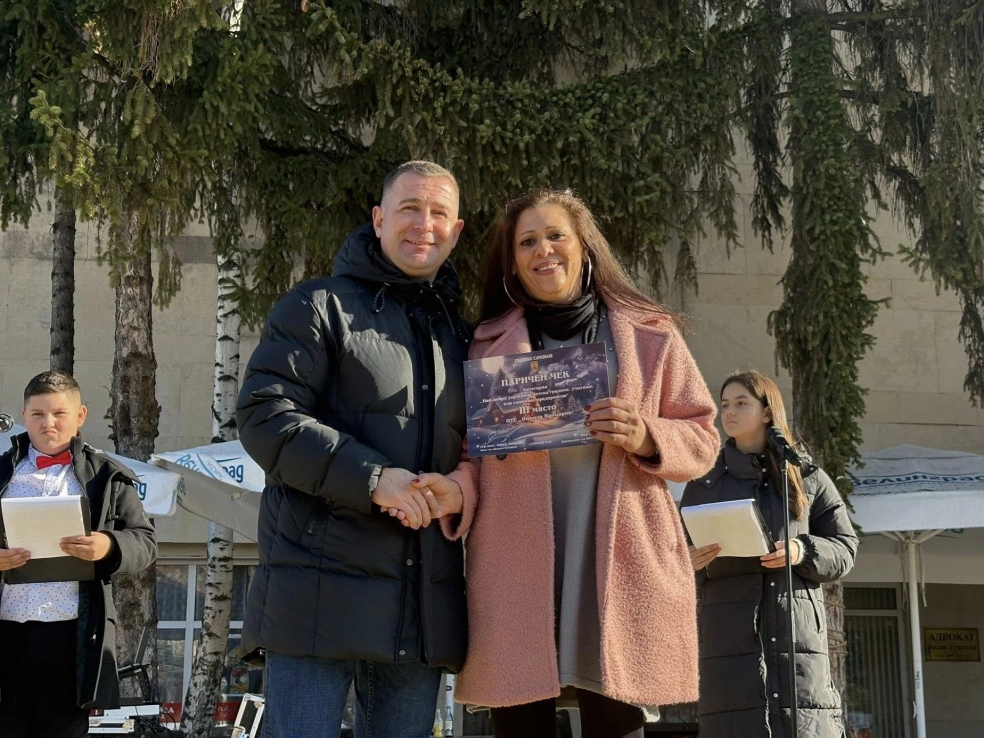 В рамките на събитието Община Самоков награди и победителите в конкурса за най-красива външна коледна украса, който се проведе за втора поредна година. В надпреварата участваха украсени площади на населени места, домове, търговски обекти, училища, детски градини и социални услуги, а отличените бяха избрани изцяло от публиката чрез най-много харесвания във Facebook страницата на общината. Така жителите на Самоков се превърнаха в жури и активно участваха в празничната инициатива.