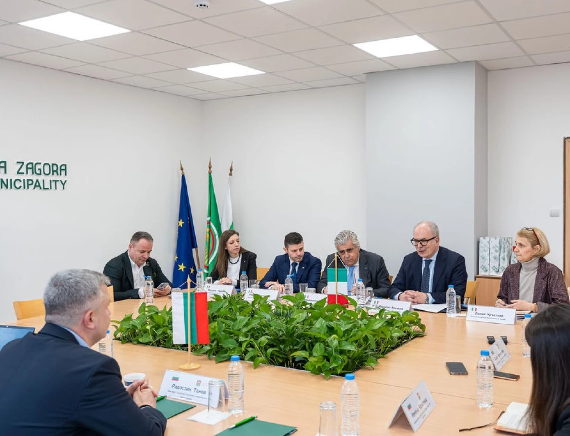 Н. Пр. Марчело Апичела, Посланик на Италия в Република България посети Община Стара Загора днес, придружен от Нунцианте Кораджо - председател на Конфиндустрия България, Роберт Санторели - предишен председател на Конфиндустрия България, Мариела Панева - мениджър „Връзки с обществеността“ в Конфиндустрия България и Лилия Кръстева – преводач към търговски отдел на Посолството на Италия. Домакини на срещата бяха зам.-кметът с ресор „Транспорт, екология, инвестиции и зелен преход“ Радостин Танев и Моника Минтова, младши експерт от отдел „Инвестиции, енергийна ефективност и зелен преход“.