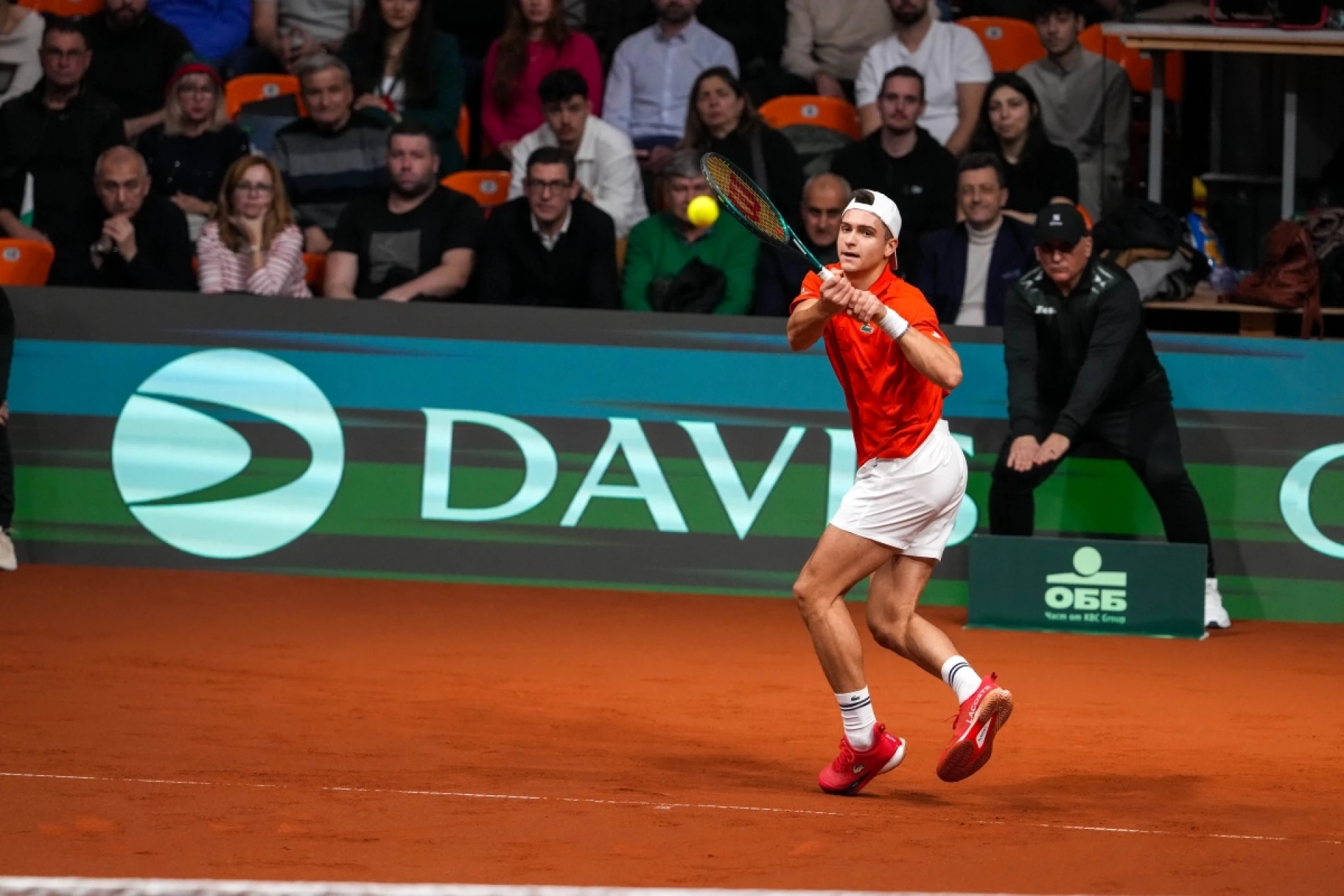 18-годишният Александър Василев отстъпи пред 72-ия в световната ранглиста при мъжете Рафаел Колиньон в откриващия мач от историческия за България двубой срещу Белгия за Купа "Дейвис". Младата българска звезда игра повече от достойно срещу по-опитния съперник в зала "Колодрума" в Пловдив, но бе победен от Колиньон с 6:3, 6:3. По-рано този сезон, в Бризбън Колиньон победи също с 2:0 сета голямата българска звезда в тениса Григор Димитров.