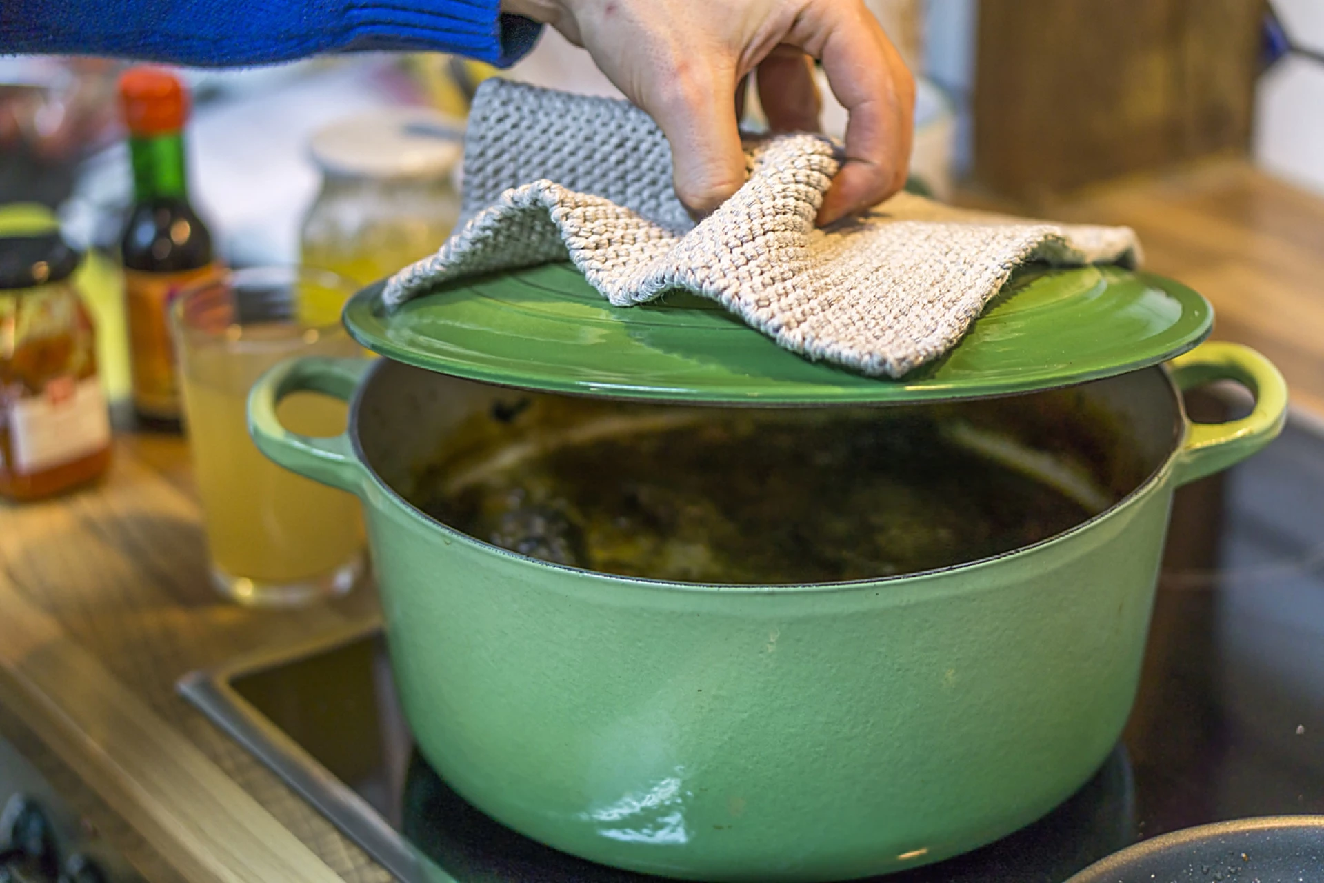 За да предотвратите тази опасност, не забравяйте да използвате нежна ръка, когато почиствате емайлирания си чугун, и го проверявайте редовно за драскотини. Ако содата бикарбонат и водата не са достатъчни, за да се справят с петната от загоряло, можете да подобрите пастата, като добавите оцет или водороден прекис. Като последна мярка можете да отидете в Amazon и да си купите почистващ препарат, специално предназначен за емайлиран чугун . Тези методи за почистване са предимно за емайлиран чугун; ако имате петна от загоряло по котлона си, ще ви е необходим различен метод за премахването им.