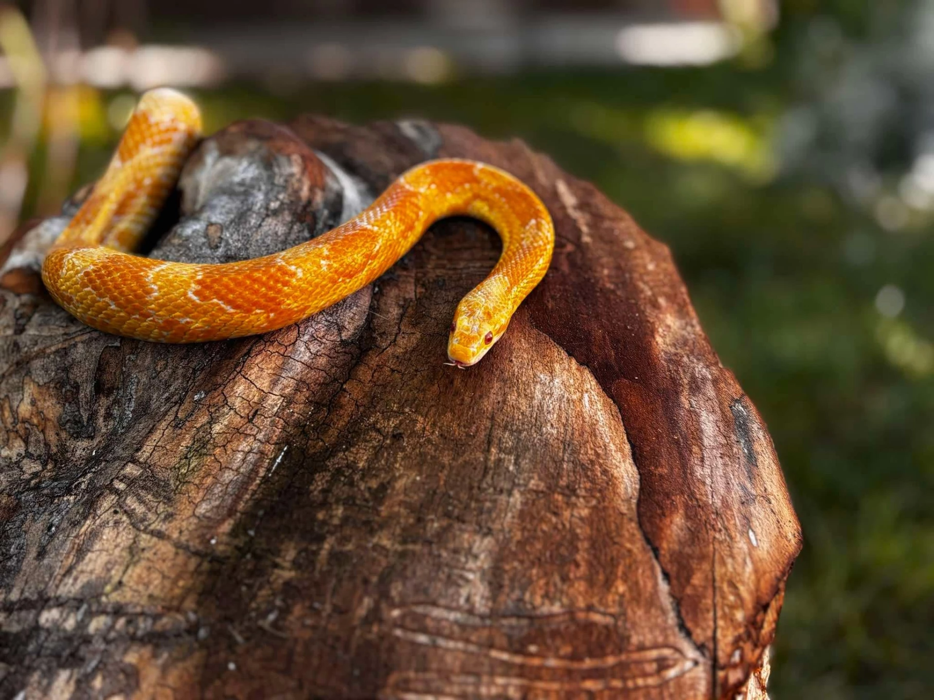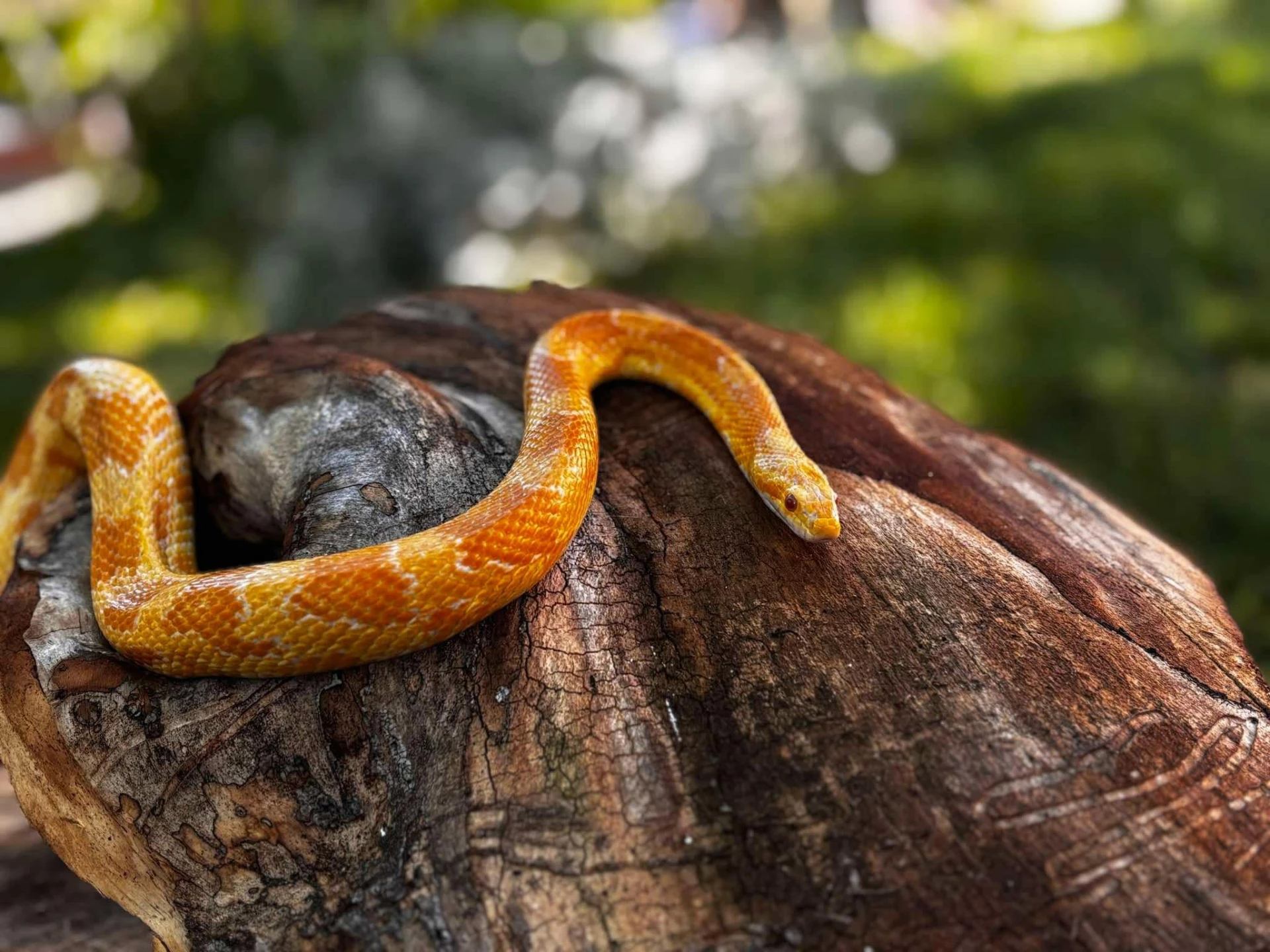 Освен необичайното си присъствие, змията впечатлява и с външния си вид – тя е албинос, или по-точно амеланистична форма на царевичния смок. Това означава, че липсва тъмният пигмент в кожата, което я прави жълто-бяла с розови очи – рядка и ценена разновидност сред любителите на влечуги. Когато животното е постъпило в спасителния център към зоопарка, е било в стрес и леко изгладняло, но без сериозни травми. Специалистите са се погрижили за него, а то бързо се е адаптирало към условията в новата си среда. Царевичният смок вече е част от образователната програма на зоопарка и се използва в беседи с деца и посетители.